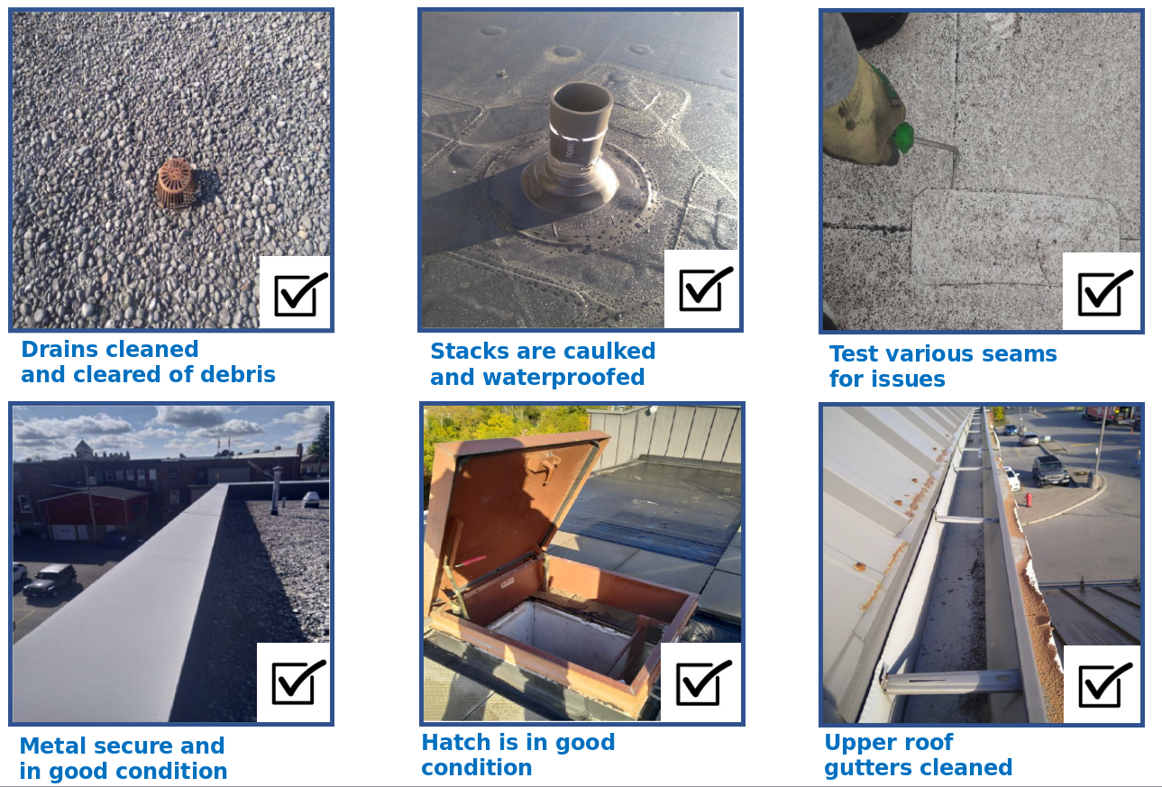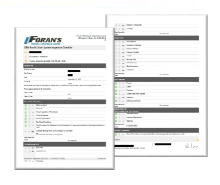 Foran’s Preventative Roof Services (General Roof Maintenance or GRMs) are cost- effective ways to maintain the condition of your roof and help to extend its longevity. In addition to protecting your investment, they keep you compliant with roof warranty care and maintenance. Our technicians complete a thorough inspection of the roof and roof features using a comprehensive checklist. Photos are taken at the time of inspection and included with a report to the owner.